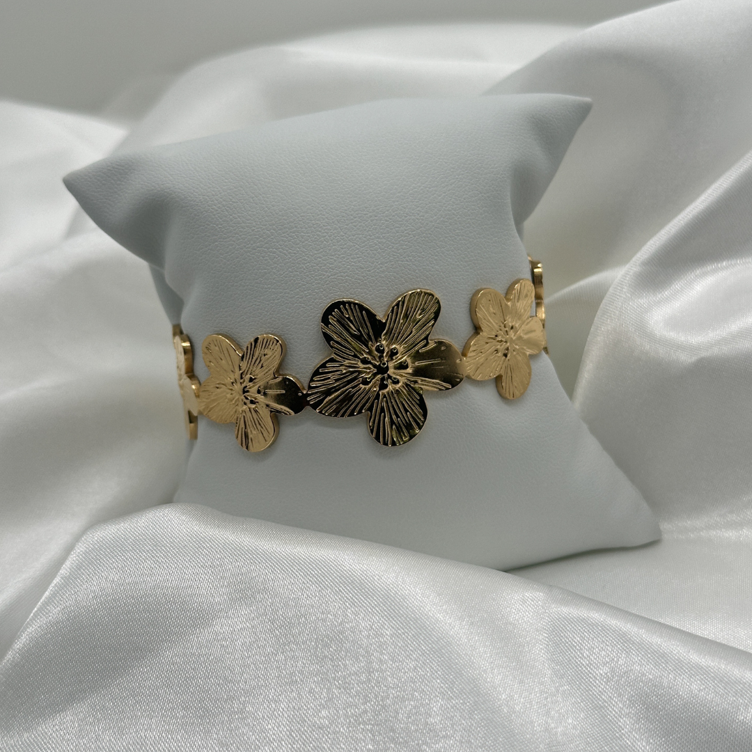 Le jonc Bluma est un jonc élégant composé d’une série de fleurs identiques qui apportent une touche féminine et délicate à ce bijou intemporel.
